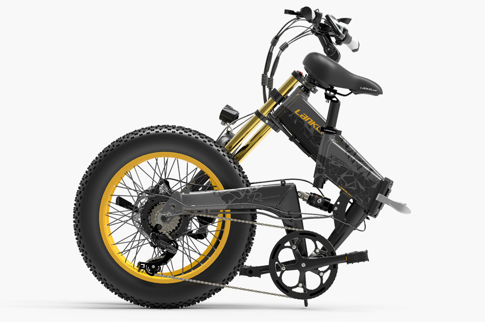 The Lankeleisi X3000Plus-up is equipped with a 48V 1000W motor and 20*4.0 wide tires to comfortably traverse rough roads. A removable 48V 17.5Ah large-capacity battery with a range of 60KM in electric mode and 120KM in pedal-assisted mode. Foldable design for easy storage and transportation, 15S quick folding, easy to carry for outdoor rides.